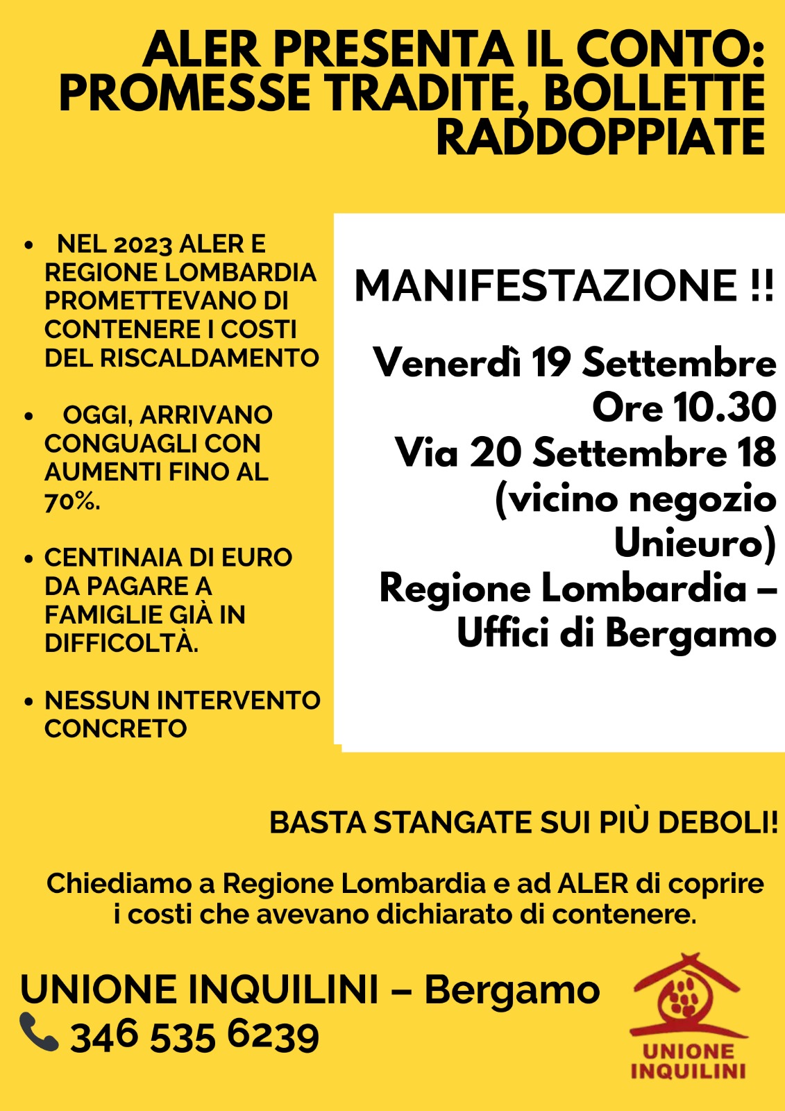 Giovedì 11 dicembre Unione Inquilini ha indetto un presidio degli inquilini delle case popolari, davanti agli uffici dell’ALER di Bergamo. Prosegue la vertenza degli inquilini contro l’aumento ingiustificato delle spese di riscaldamento e il conguaglio-stangata di questa estate; dopo due mesi di mobilitazione e diverse richieste di incontro, nessuna seria apertura di un tavolo di … Leggi tutto