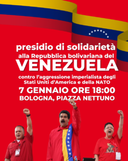da Federazione PRC di Bologna Il Venezuela è stato attaccato dagli Stati Uniti d’America e vede oggi minacciata, come mai prima d’ora, la propria sovranità e indipendenza e il proprio diritto all’autodeterminazione. L’aggressione militare voluta da Trump è un crimine, l’ennesima violazione del diritto internazionale e della Carta delle Nazioni Unite, che ha come obiettivo … Leggi tutto